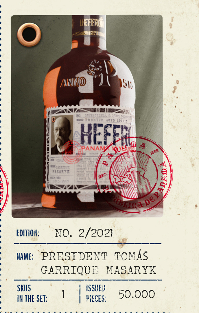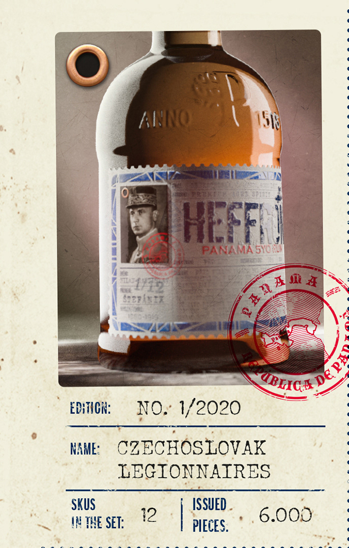 The limited edition was created over a period of four years. It was expanded to include World War II fighters and the first Czechoslovak president, all of whom came through the Czechoslovak legions. Military documents filled out on a typewriter were the inspiration for the limited edition. Each of the twenty-three labels tells the story of a particular fighter's life and military accomplishments. The name Heffron is also the name of the last ship that transported the legionnaires back home.
